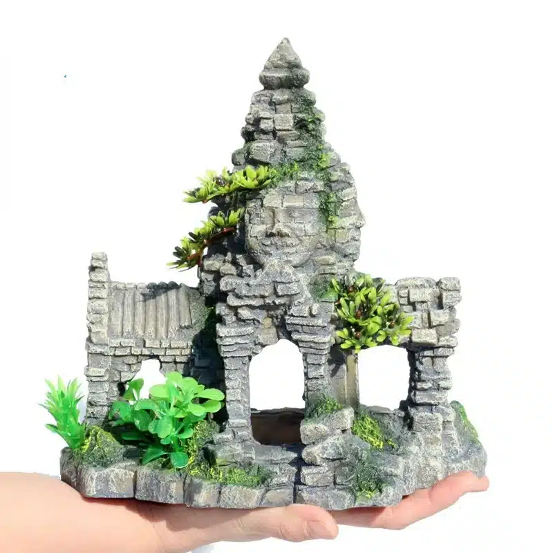Décoration pour Poissons Ancient Temple de Bouddha et Verdure
